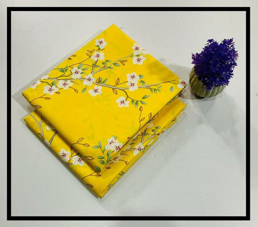 2 Pcs Women's Unstitched Tavira Lawn Printed Suit (Yellow White,Flower Design)