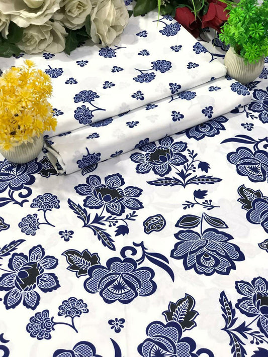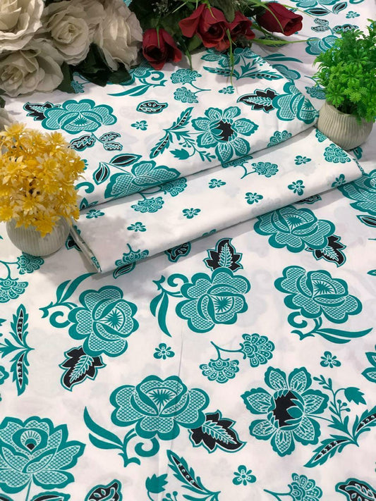 2 Pcs Women's Unstitched Tavira Lawn Printed Suit (Sky Blue Flower)