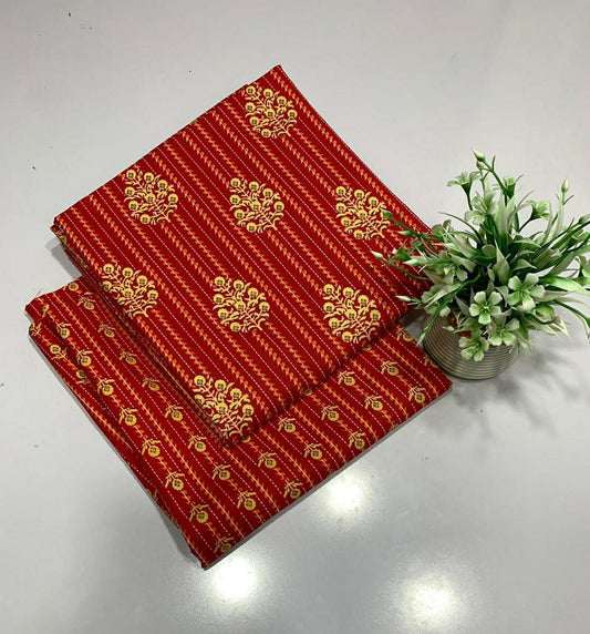 2 Pcs Women's Unstitched Tavira Lawn Printed Suit (Maroon)