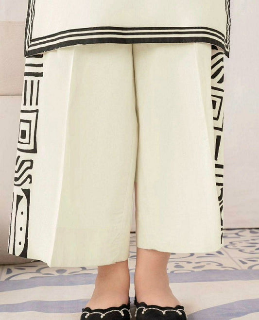 3 Pcs Women's Stitched Silk Printed Suit (White)