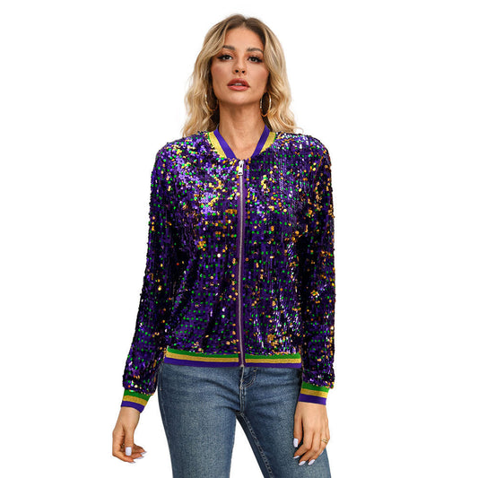 Women's Fashion Long Sleeve Sequined Trendy Baseball Uniform Jacket Cardigan Jacket
