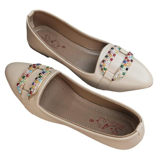 Women's Rexine Casual Pumps (Multi Stone Design)