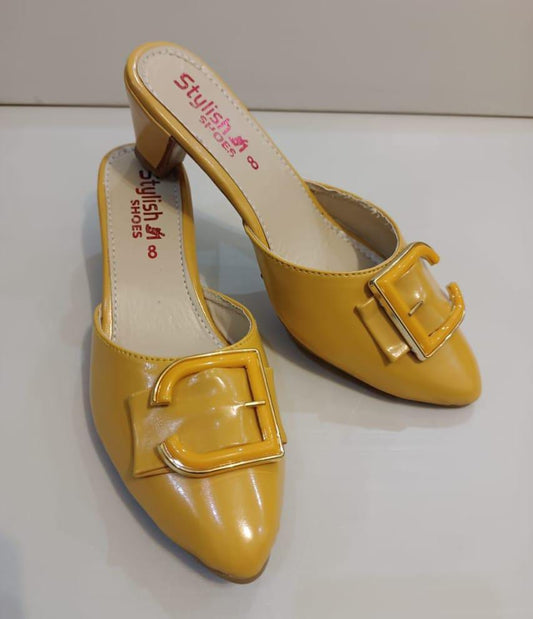 Women's Rexine Casual Heels (Mustard)