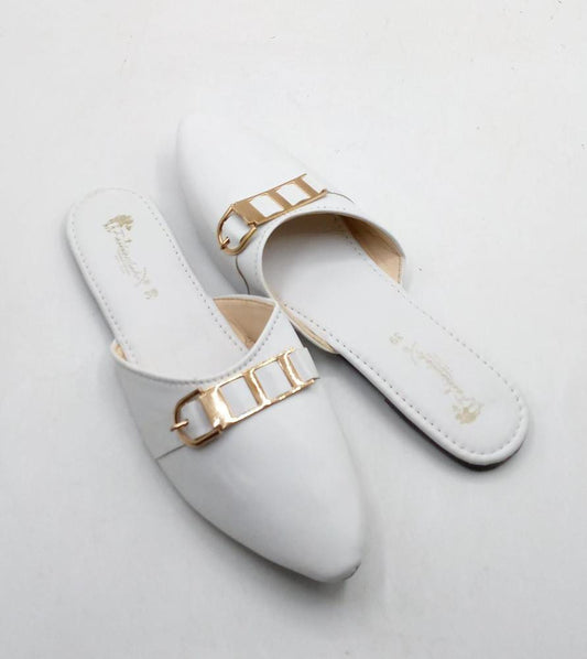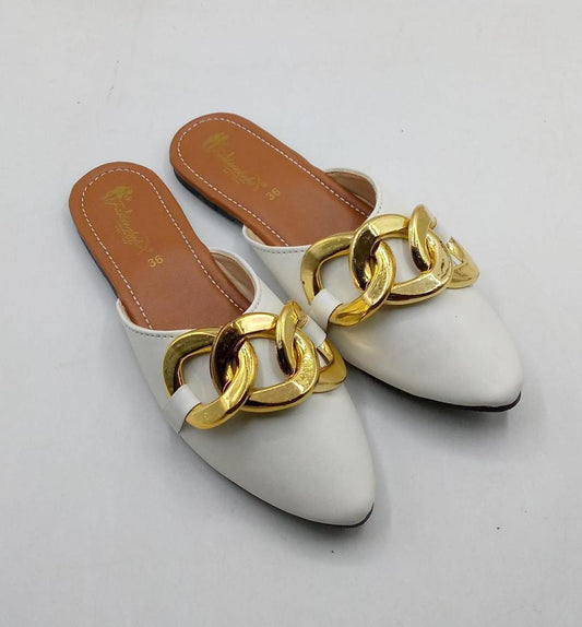 Women's Rexine Casual Pumps (White Golden Design)