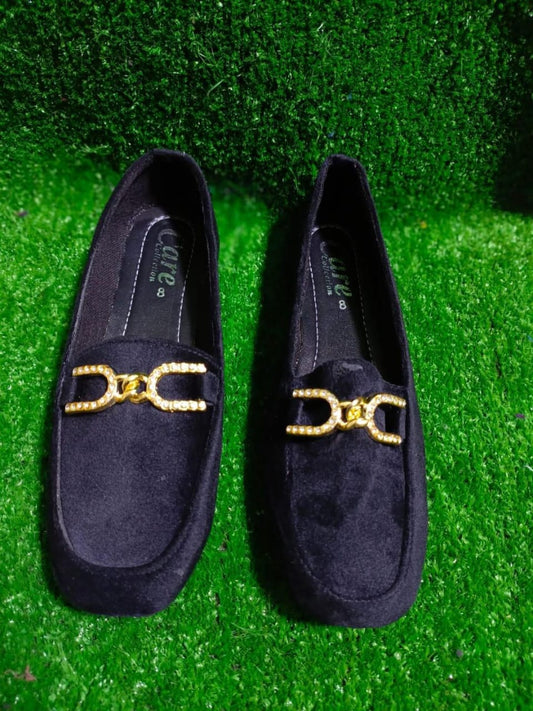 Women's Velvet Fancy Pumps (Black Flower Design)