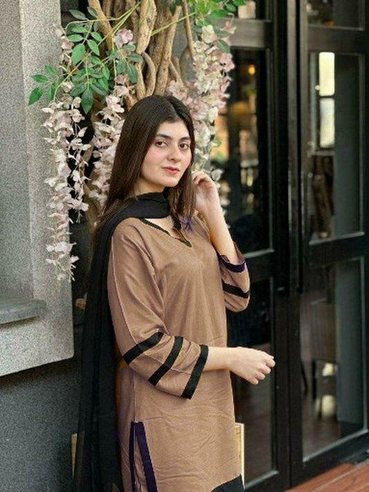 Women's Stitched Arabic Lawn Plain Suit (Brown)