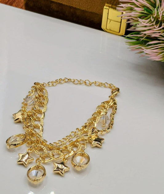 1 Pc Funky Gold Plated Crystal Charm Bracelet