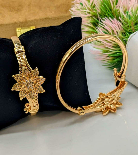 1 Pc Flower Design Gold Plated Crystal Kara Bracelet