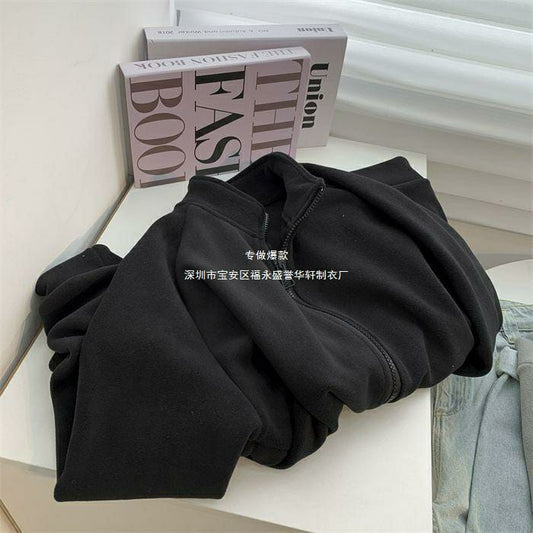 1 Pc Double-Sided Polar Fleece Jacket For Women - Plush, Thickened, Warm lining, Versatile (Black)