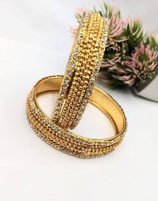 2 Pcs Minakari Design Gold Plated Kundan Kara Bangle