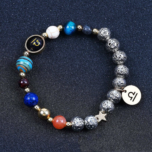 Twelve Constellation Blue San Lettering Bracelet Antique Silver Volcanic Stone Bracelet