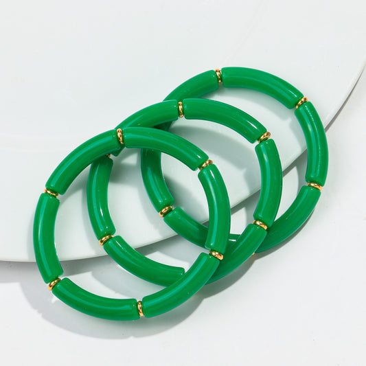 Acrylic Curved Bamboo Tube Multi-color Vintage Marbling Bracelet