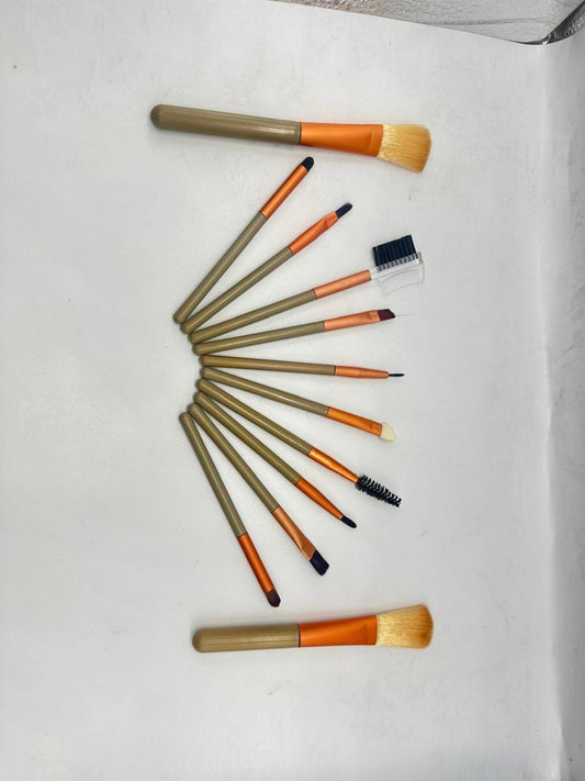 12 Pcs Golden & Orange Makeup Brushes Set - Perfect for Blending, Contouring & Eye Makeup