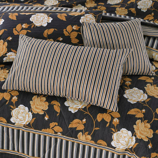 7 Pcs Printed Cotton Mix Comforter Set for Double Bed (Black,Golden)