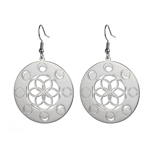Moon Phase Round Pendant Earrings Women's Stainless Steel Earrings