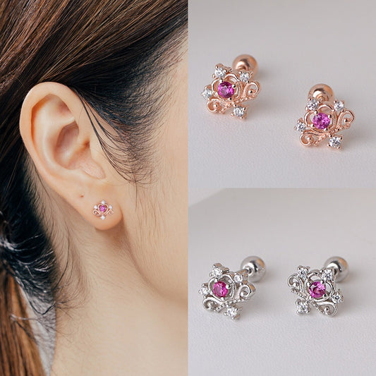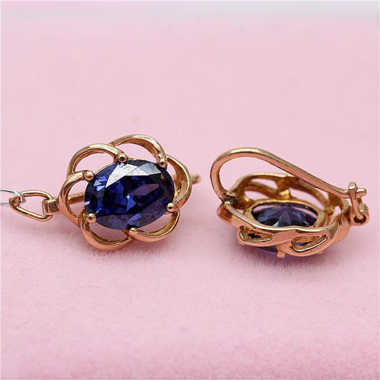 Inlaid Blue Stone Lace Purple Gold Earrings