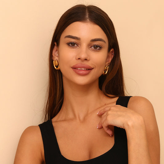 Stainless Steel 18K Gold Plating Geometric Stitching Irregular Heart Stud Earrings