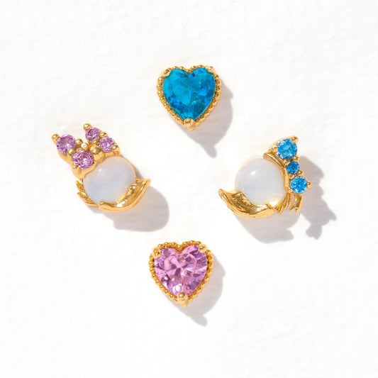 Light Luxury Minority Design Cute Cartoon Duck Colored Loving Heart Earings Set