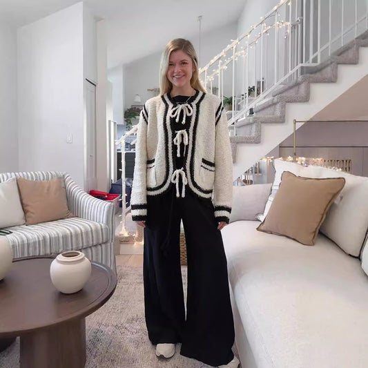 Knitted Lace-up Pocket Sweater Coat Women's Clothing