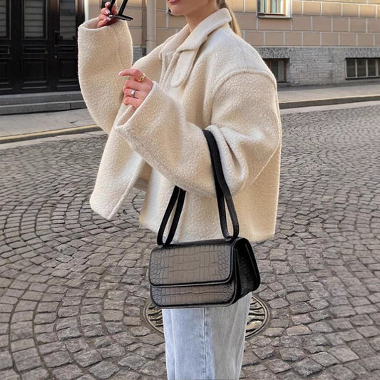 Woolen Short Jacket Fashionable All-match Outside Seam Pocket Single-breasted Jacket