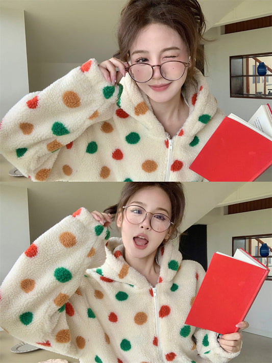 Korean-style Cute Lamb Wool Colorful Polka Dot Coat