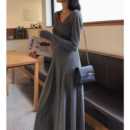 Thread Knitted Sunken Stripe Long Sleeve Big Hem Dress