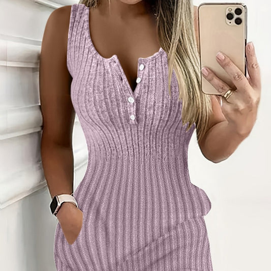 Simple Solid Color Casual Sleeveless Diagonal Collar Vest Dress
