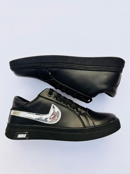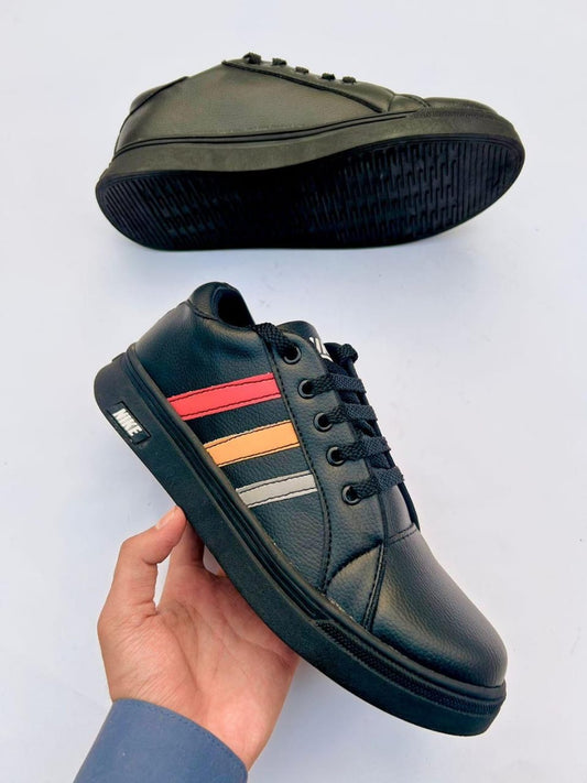 Men's Synthetic Leather Sneakers (Black)