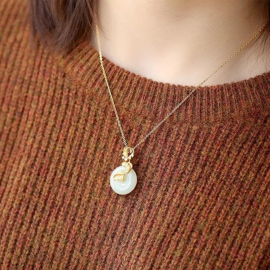 Koi Hetian Jade Peace Buckle Personality Retro Pendant