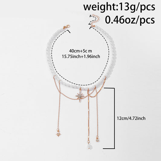 Pearl Necklace Tassel Alloy Six-pointed Star