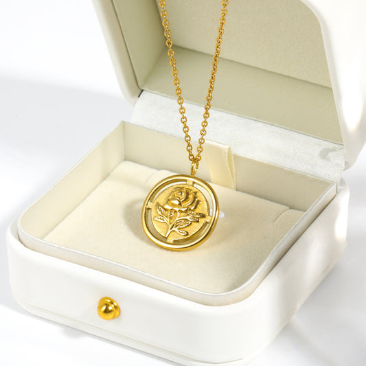 Titanium Steel French Retro Three-dimensional Flower Cutout Rose Necklace Electroplated 18K Gold