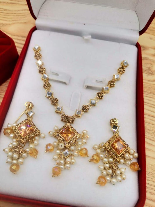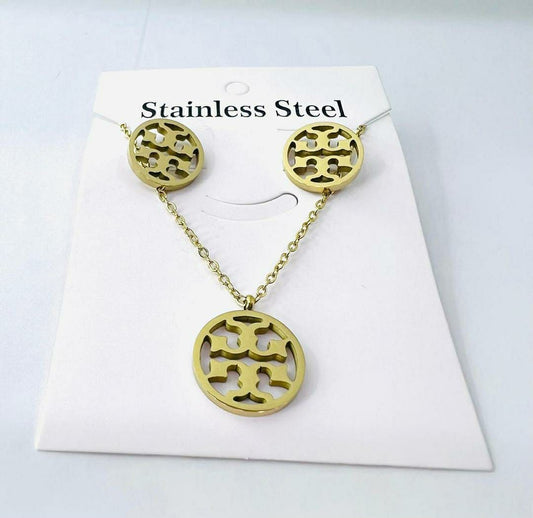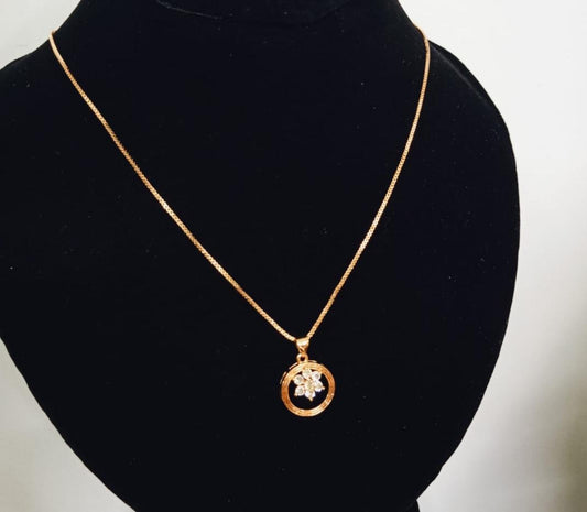 Gold Plated Flower Shaped Pendant with Black and White Beads