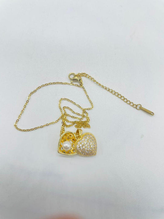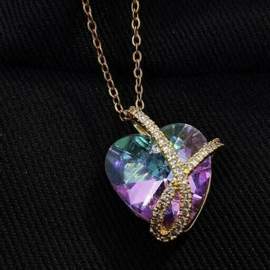 Stunning Heart Design Gold Plated Necklace with Purple Artificial Stones