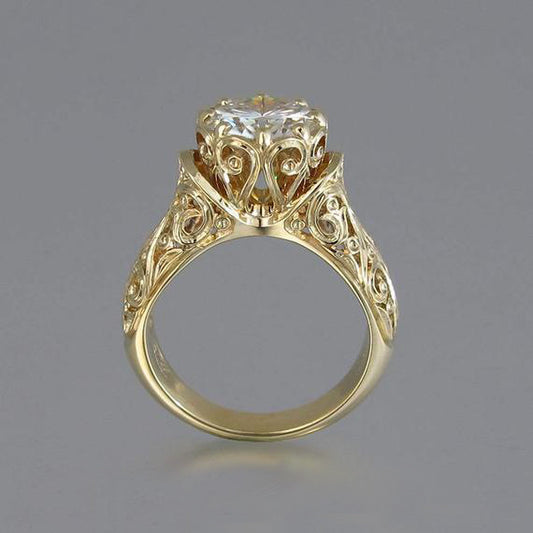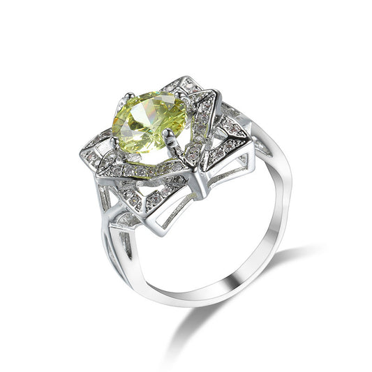 Fashion Retro Geometric Hollow Carved Zircon Ring