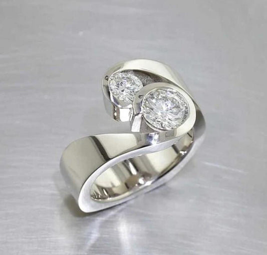 Luxury Three-layer Zircon White Gold Plated Engagement Ring