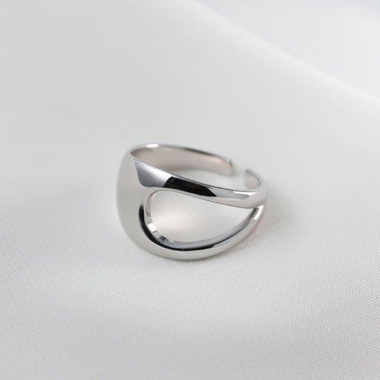 Simple Geometric Glossy Hollow Female Retro Fashion And Personalized 925 Silver Opening Index Finger Ring