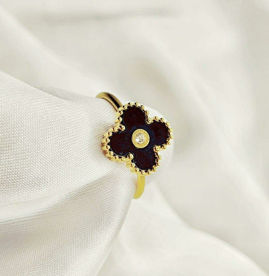 Clover Design Gold Plated Zircon Adjustable Ring