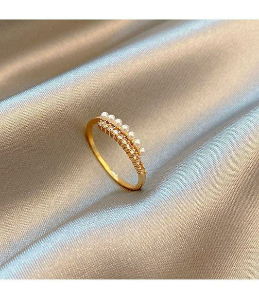 Bead Pearl Overlapped Ring Adjustable