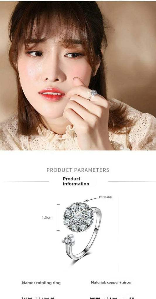 Rotatable Balls Design Silver Plated Cubic Zirconia Birthstone Ring