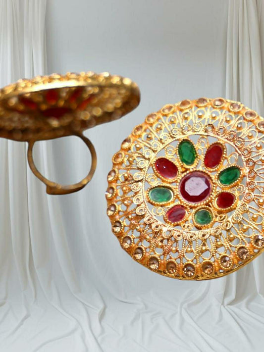 Rajasthani Design Gold Plated Artificial Stones Adjustable Ring