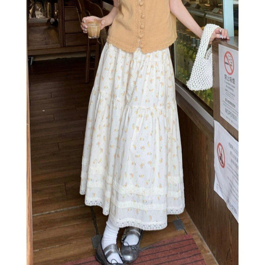 Sweet Lace Edge A- Line Skirt Temperament Slimming