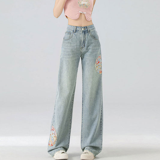 High Waist Straight Niche Design Embroidered Mopping Wide Leg Trousers