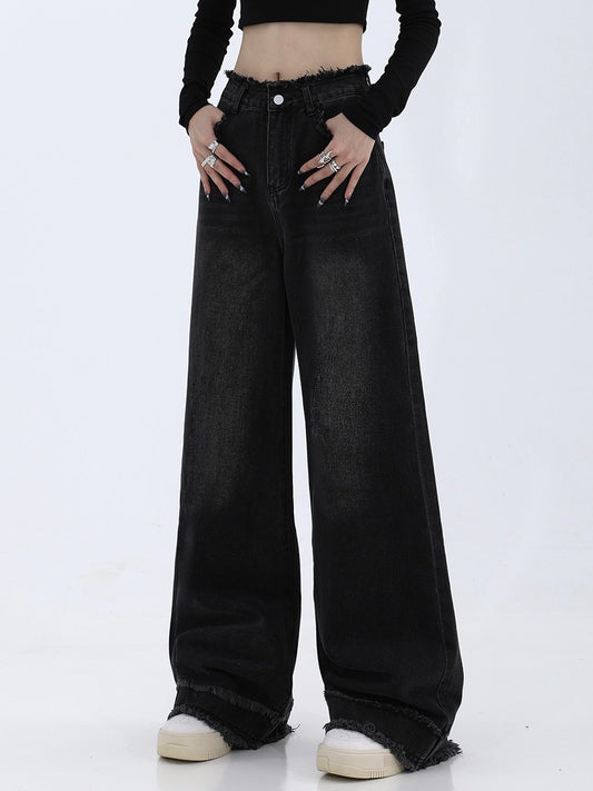 Retro Wide Leg Jeans Women's High Waist Loose Distressed Straight-leg Pants