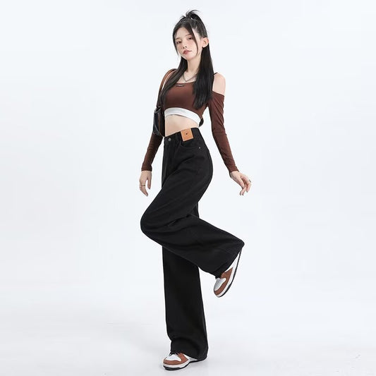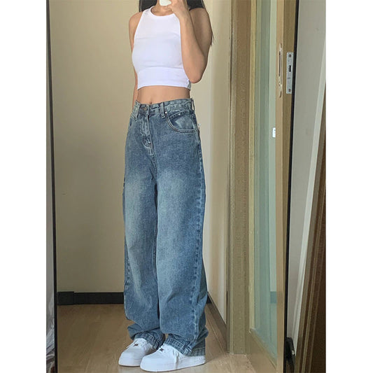 Retro Wide Leg Jeans Women's High Waist Loose Straight Mopping Pants