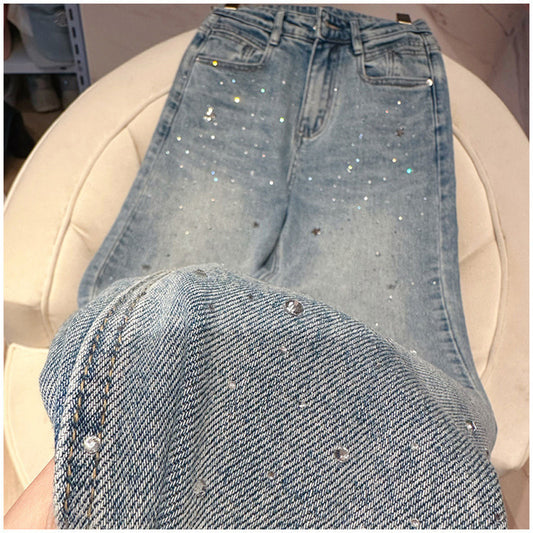 Design Sense Niche Heavy Embroidery Hot Drilling Starry Jeans