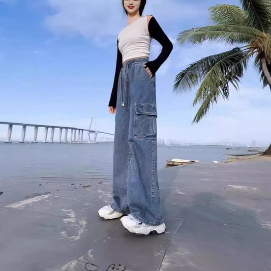 Women's High Waist Slimming And Wide Leg Denim Trousers