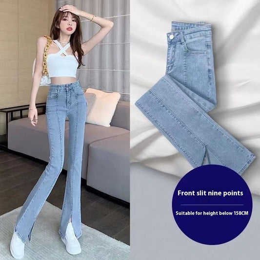 Light Color Flattering Slim Fit Slit Jeans Show High Shape