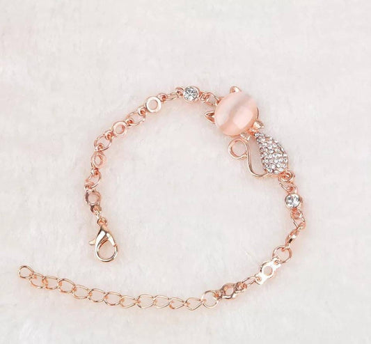 1 Pc Alloy Rose Gold Plated Opal Cat Bracelet